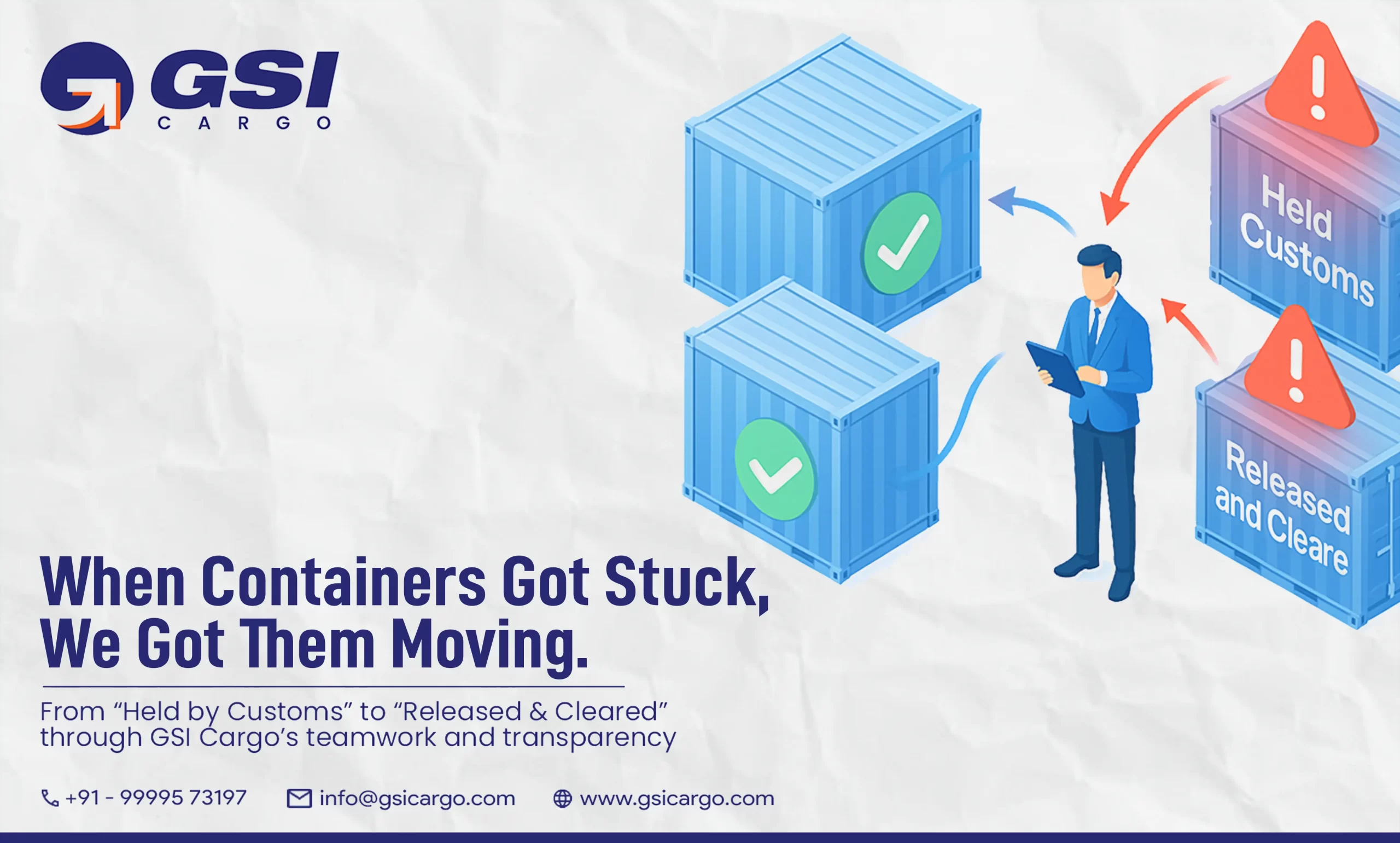 At GSI Cargo, we don’t just move containers — we deliver solutions. Dive into our Case Studies to see how we solved complex export & import challenges with transparency, innovation, and client-first strategies. Learn how our teams leveraged AI insights, proactive negotiation, and creative execution to turn crises into success stories across sea logistics.